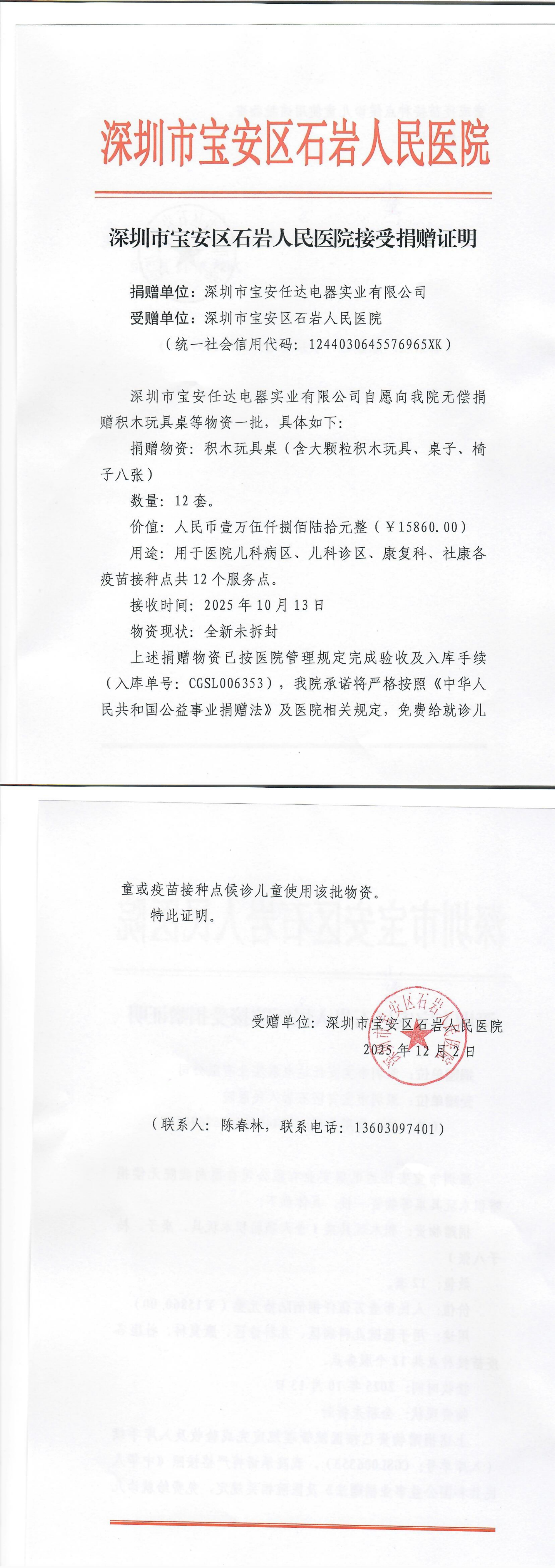 2025年10月13日,任達集團踐行企業(yè)社會責任,向深圳市寶安區(qū)石巖人民醫(yī)院捐贈了一批專為兒童康復設計的積木玩具桌,總價值達人民幣15860元。此次捐贈旨在通過寓教于樂的方式,...
