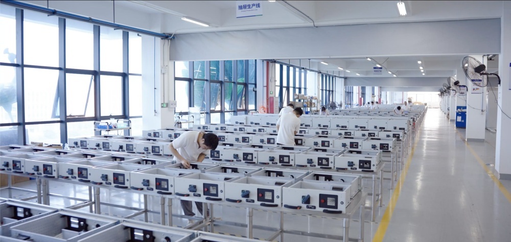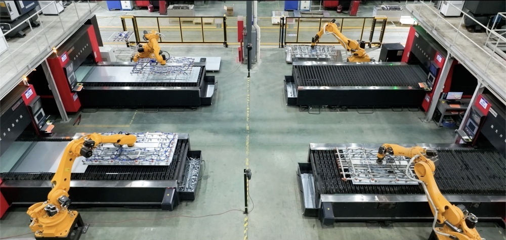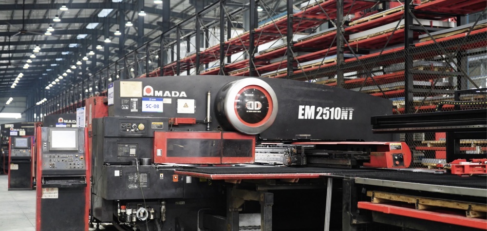 公司擁有20多條生產線,600多臺高端自動化研發和制造設備,包括德國進口噴涂自動化流水線、意大利Salvagnini自動折彎中心、日本AMADA數控沖床生產線、自動分揀落料激光生產線、三箱滾壓制造生產線、數控龍門自動壓鉚機、數控鉆攻銑加工機、數控母線沖剪機、OTC自動焊接機械人、鈑材智能送料倉庫、模具智能倉庫、大型激光切管機、全自動端子壓著機等,具備強大的生產能力。