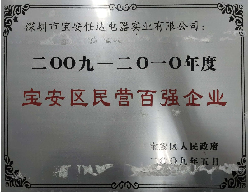 Top 100 Private Enterprises in Bao'an District for the Year 2009-2010