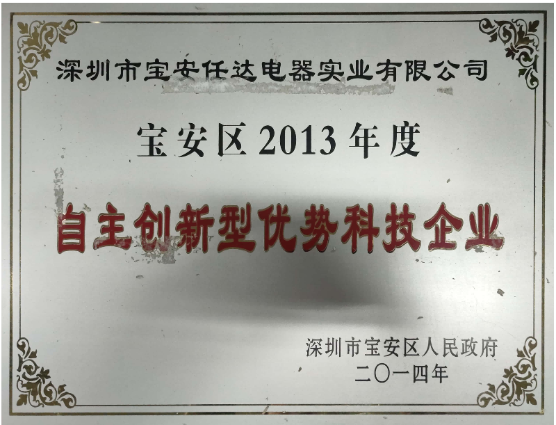 2013 Outstanding Technology Enterprise with Independent Innovation in Bao'an District