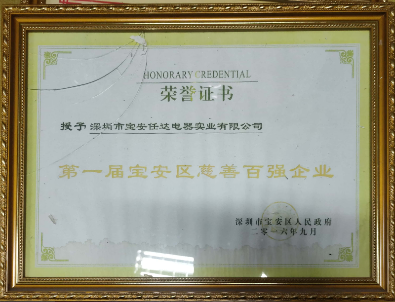 The first Bao'an District Top 100 Charitable Enterprises