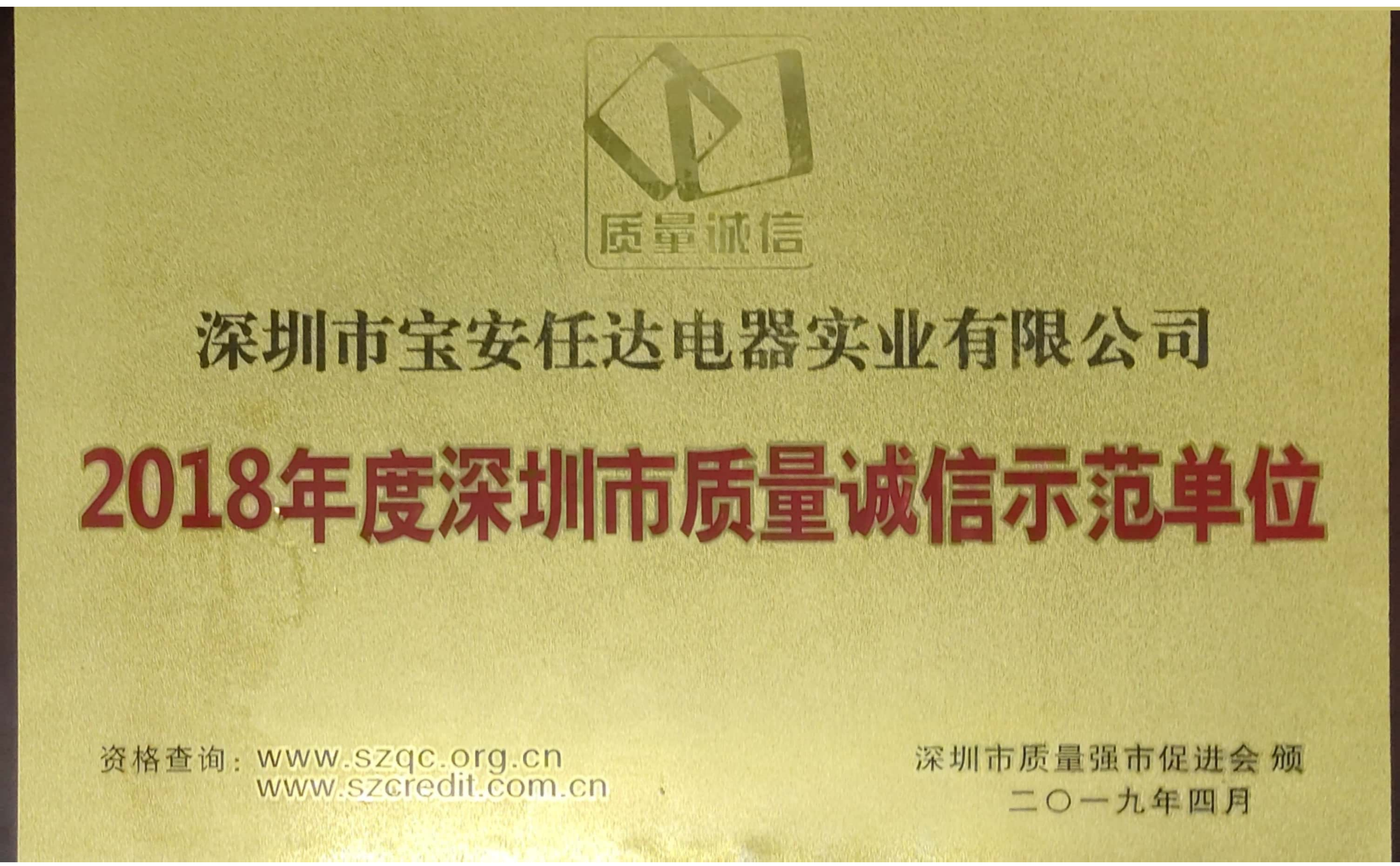 2018 Shenzhen Quality and Integrity Demonstration Unit